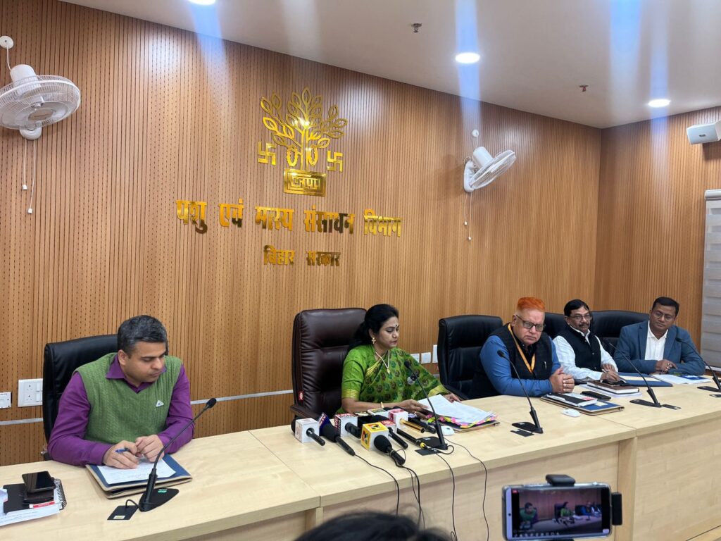 पटना। दिनांक – 03/12/2025: आज विकास भवन, पटना स्थित पशु एवं मत्स्य संसाधन विभाग के सभागार में आयोजित प्रेस कॉन्फ्रेन्स में अपर मुख्य सचिव डॉ. एन. विजयलक्ष्मी ने कहा कि वर्ष 2024-25 में बिहार के पशुपालन क्षेत्र में उल्लेखनीय वृद्धि दर्ज हुई है। दूध, अंडा और मांस उत्पादन में रिकॉर्ड बढ़ोतरी के साथ राज्य ने राष्ट्रीय औसत को भी पीछे छोड़ते हुए आत्मनिर्भरता की दिशा में महत्वपूर्ण कदम बढ़ाए हैं। विभाग की योजनाओं, आधुनिक तकनीकों और सेवाओं के सतत विस्तार ने ग्रामीण आजीविका, पोषण और आर्थिक मजबूती को नई ऊर्जा प्रदान की है। इन्हीं उपलब्धियों को साझा करने हेतु आयोजित प्रेस कॉन्फ्रेन्स में डॉ. विजयलक्ष्मी ने राज्य की प्रगति, लक्ष्य उपलब्धि और भविष्य की दिशा पर विस्तृत जानकारी प्रस्तुत की। प्रेस कॉन्फ्रेंस में निदेशक,  पशुपालन श्री उज्जवल कुमार सिंह, निदेशक मत्स्य श्री अभिषेक रंजन, निदेशक गव्य श्री केदार नाथ सिंह एवं विभाग के अन्य वरिष्ठ पदाधिकारी उपस्थित थे।