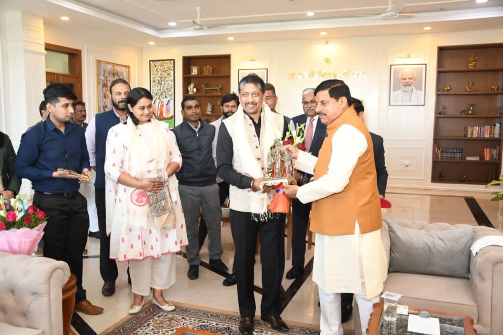 श्रेयसी सिंह ने मधुबनी साल और बोधि वृक्ष का प्रतीक चिन्ह देकर मुख्यमंत्री डॉ मोहन यादव का अभिनंदन किया तथा मुख्यमंत्री ने राम दरबार की मूर्ति देकर खेल मंत्री श्रेयसी सिंह और प्राधिकरण के महानिदेशक रवीन्द्रण शंकरण का अभिनंदन किया।