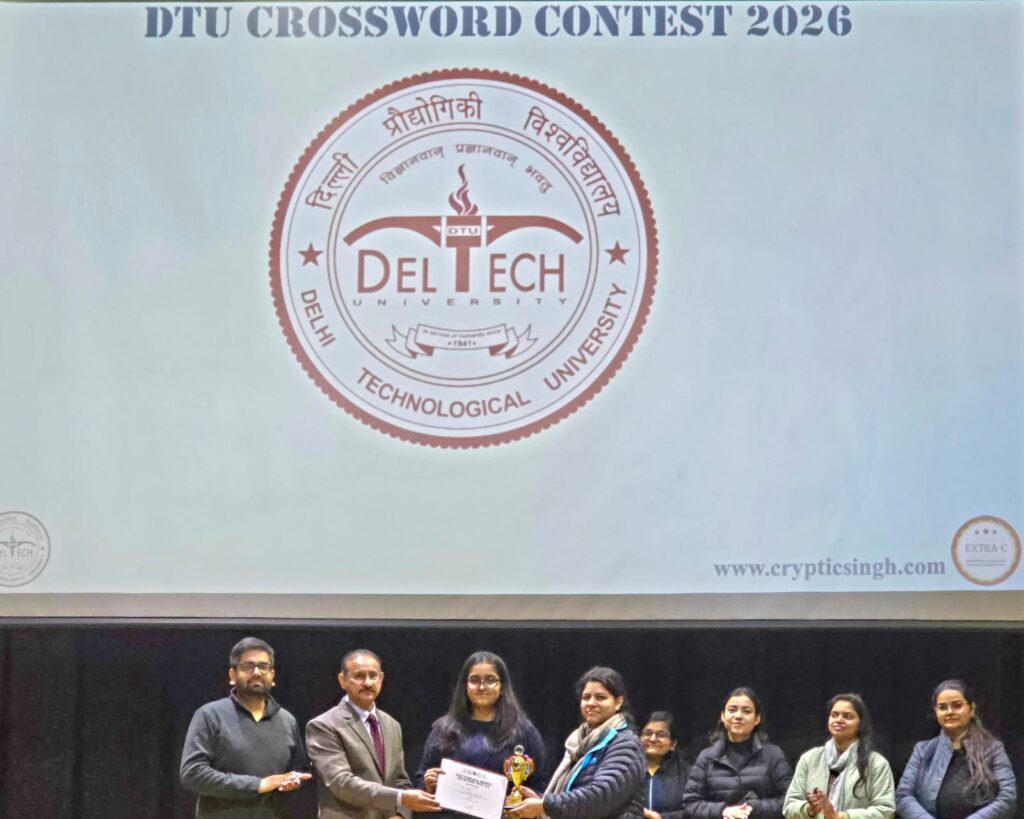 नई दिल्ली, 23 जनवरी 2026: दिल्ली प्रौद्योगिकी विश्वविद्यालय (DTU) के परिसर में 23 जनवरी 2026 को DTU क्रॉसवर्ड प्रतियोगिता 2026 का सफल आयोजन किया गया। भारी वर्षा के बावजूद दिल्ली के विभिन्न संस्थानों से आए छात्रों ने उत्साहपूर्वक भाग लिया और शब्द पहेलियों के प्रति अपने समर्पण और लगाव का परिचय दिया। छात्रों की उल्लेखनीय भागीदारी ने इस आयोजन को एक बड़ी सफलता बना दिया।