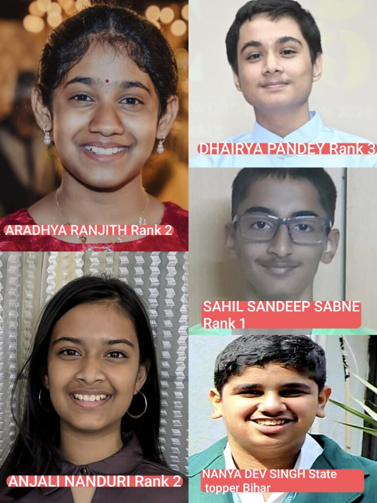 डीपीएस पटना के नन्या देव सिंह, जिन्होंने एकल रूप में भाग लिया, बिहार के स्टेट टॉपर बने। वहीं, दिल्ली में द मदर्स इंटरनेशनल स्कूल की राम्या बिंदल और आर्यन सेजवाल की टीम टॉपर रही, जबकि हैदराबाद के विद्याश्रम की तन्वी उद्दराजा और आन्या श्रीवास्तव की टीम तेलंगाना में शीर्ष पर रही।
