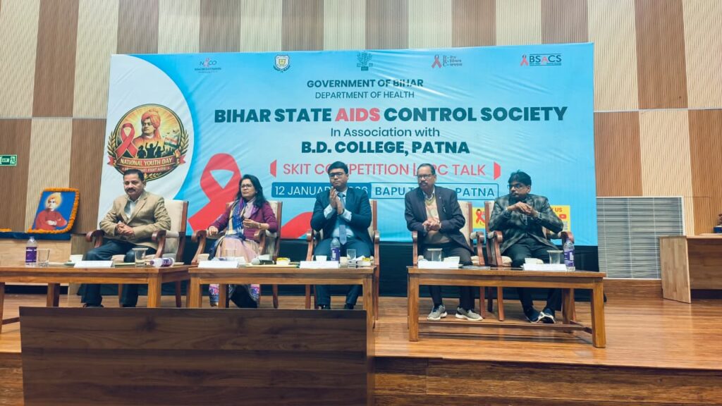 दिनांक: 12.01.2026, पटना: राष्ट्रीय युवा दिवस के अवसर पर बिहार स्टेट एड्स कंट्रोल सोसाइटी (BSACS) एवं बी.डी. कॉलेज, पटना के संयुक्त तत्वावधान में आज बापू टावर, पटना में एचआईवी/एड्स जागरूकता को लेकर स्किट प्रतियोगिता एवं RRC टॉक का आयोजन किया गया।