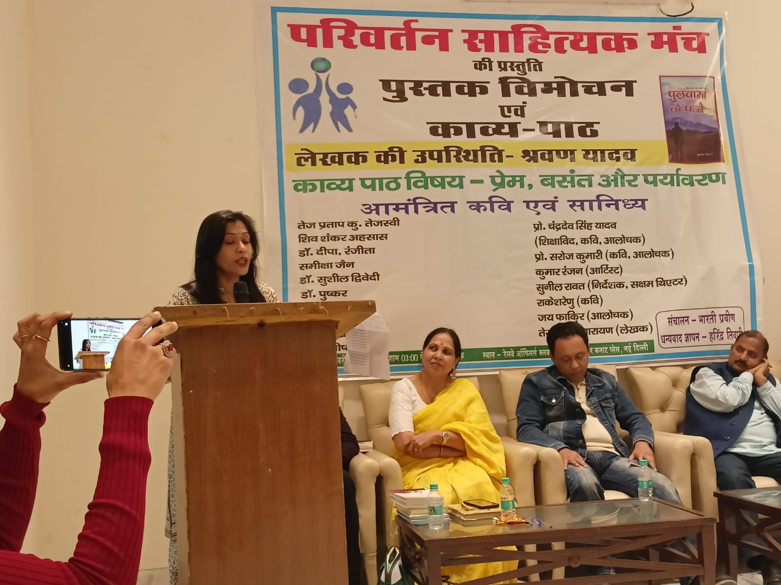 राजधानी दिल्ली के कनॉट प्लेस की पी.के. रोड पर स्थित रेलवे ऑफ़िसर्स क्लब में आज – 14 फ़रवरी – 2026 को परिवर्तन साहित्यिक मंच के तत्वावधन में पुस्तक विमोचन एवं “प्रेम, बसंत और पर्यावरण” विषय पर काव्य-पाठ का आयोजन किया गया।
