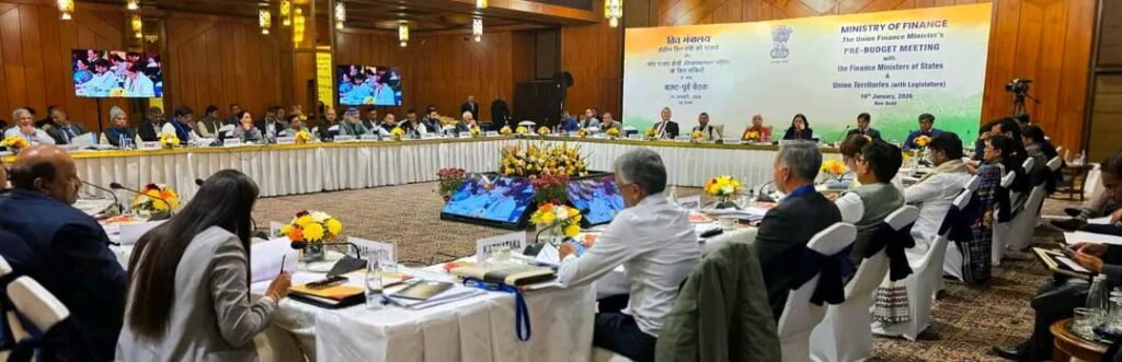 नई दिल्ली में केंद्रीय वित्त एवं कॉरपोरेट कार्य मंत्री श्रीमती निर्मला सीतारमण की अध्यक्षता में आयोजित आगामी केंद्रीय बजट 2026-27 के लिए बजट-पूर्व परामर्श बैठक में बिहार के माननीय वित्त मंत्री श्री बिजेंद्र प्रसाद यादव ने राज्य के हितों को मजबूती से रखा। बैठक में वित्त विभाग, बिहार के अपर मुख्य सचिव श्री आनंद किशोर सहित विभिन्न राज्यों के माननीय मुख्यमंत्री और माननीय वित्त मंत्री भी उपस्थित रहे।