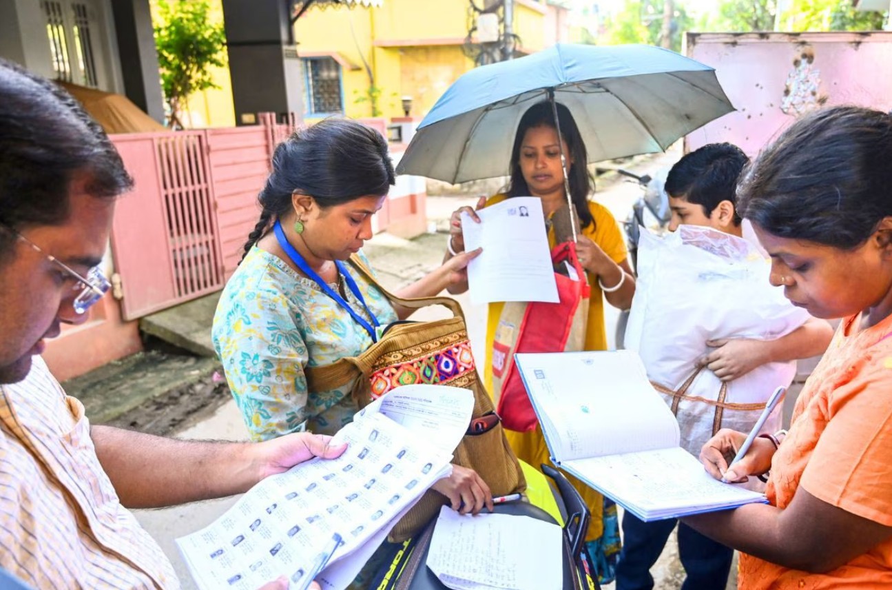 SIR प्रक्रिया के दौरान एक ही एन्यूमरेशन फॉर्म का क्यूआर कोड स्कैन करने पर पता चला कि उसी महिला का नाम एक साथ 44 अलग-अलग विधानसभा क्षेत्रों की वोटर लिस्ट में मौजूद है। उसके पति का नाम भी सभी वोटर लिस्ट में शामिल है, लेकिन हर जगह सरनेम अलग है। ऐसे वोटर-कार्ड फर्जीवाड़े का मामला पश्चिम बर्दवान के पांडवेश्वर विधानसभा क्षेत्र के बूथ 47 में सामने आया है।